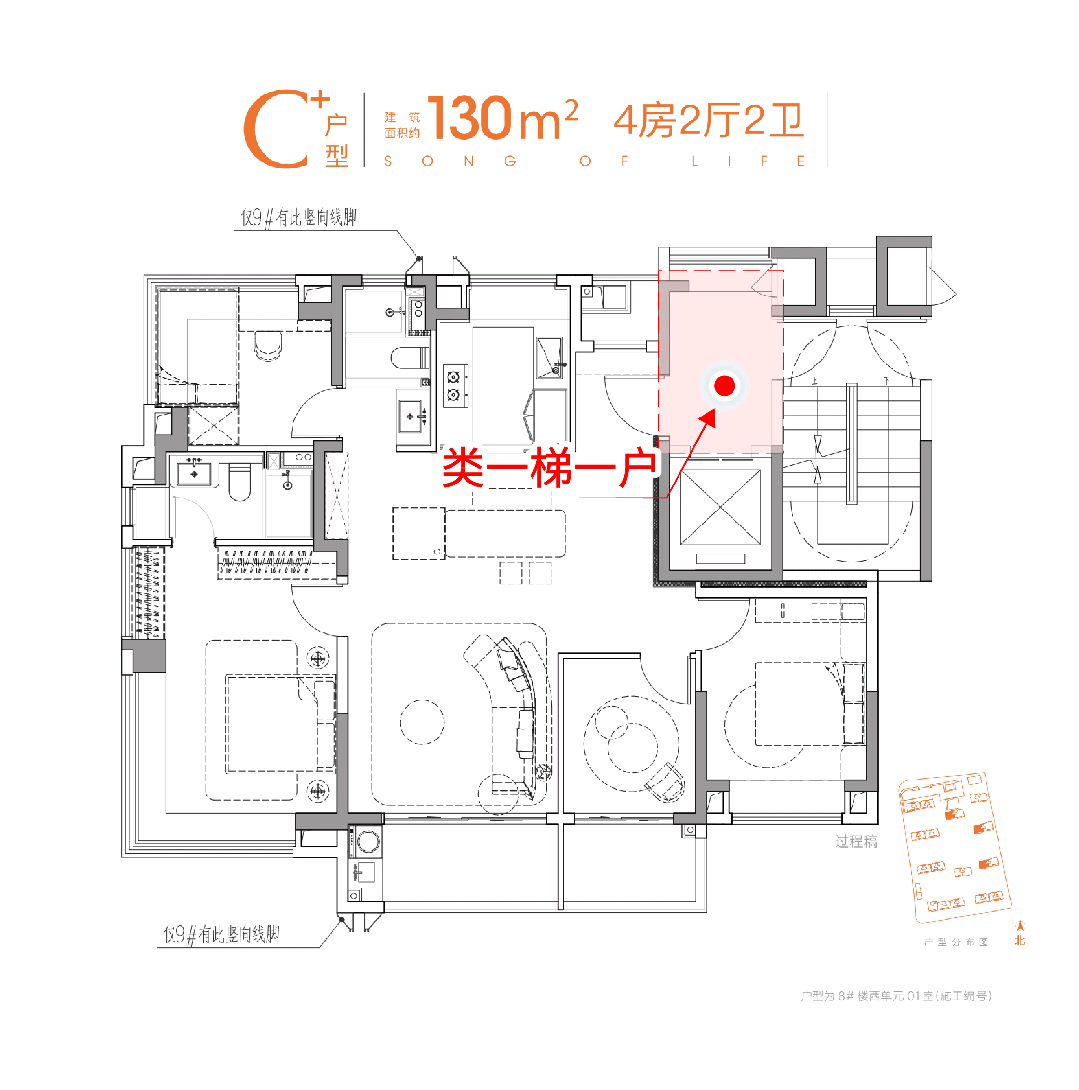 纯两梯两户,每户拥全明带飘窗的电梯厅,提升归家仪式感的同时可打造双玄关,放伞、挂衣、换鞋等动作在进门前即可完成,就连不常用的行李箱、运动器械、儿童玩具等物品,也能在此妥善安排,释放室内空间。