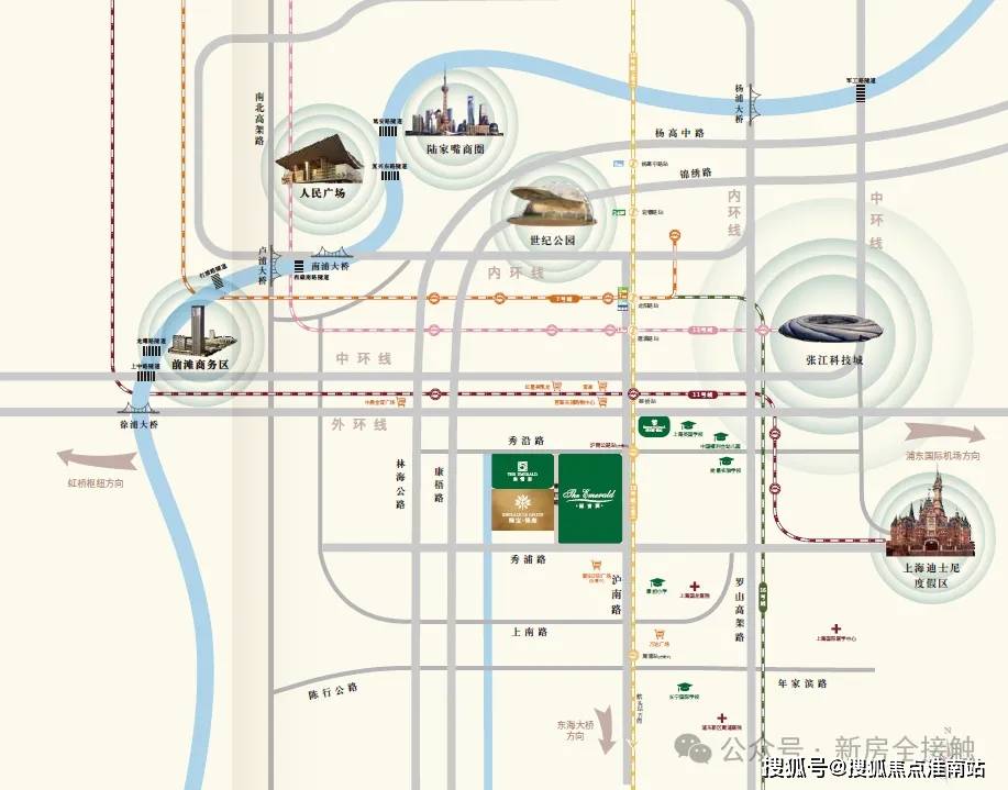 距离中环仅4.5公里,紧临S20环线四桥四隧、双轨枢纽,高架快速路网,约30分钟的车程可抵达新天地、陆家嘴等核心区域,奠定了绿宝园的城市墅区血统。