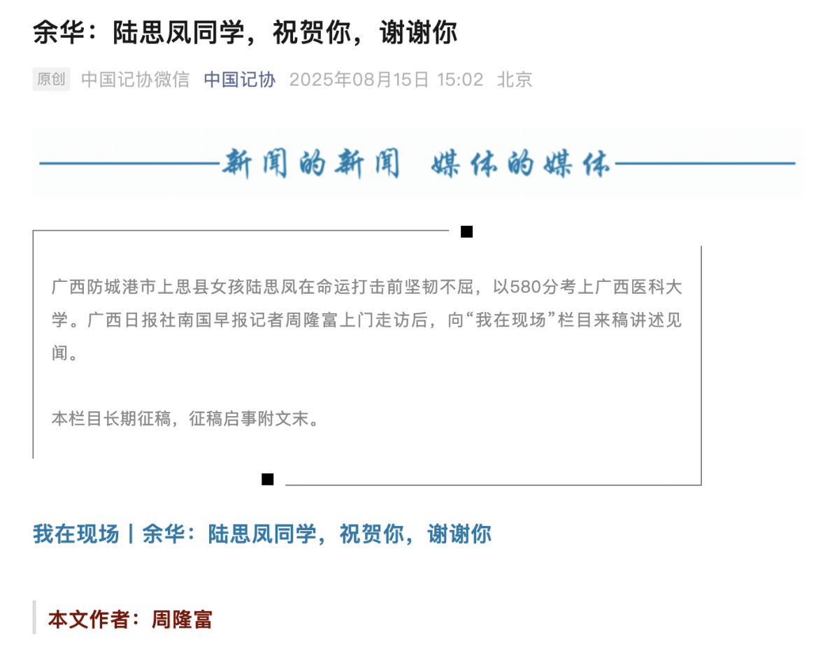随后,南国早报、广西日报全媒体平台相继发布图文、视频等产品,全网阅读量突破200万。